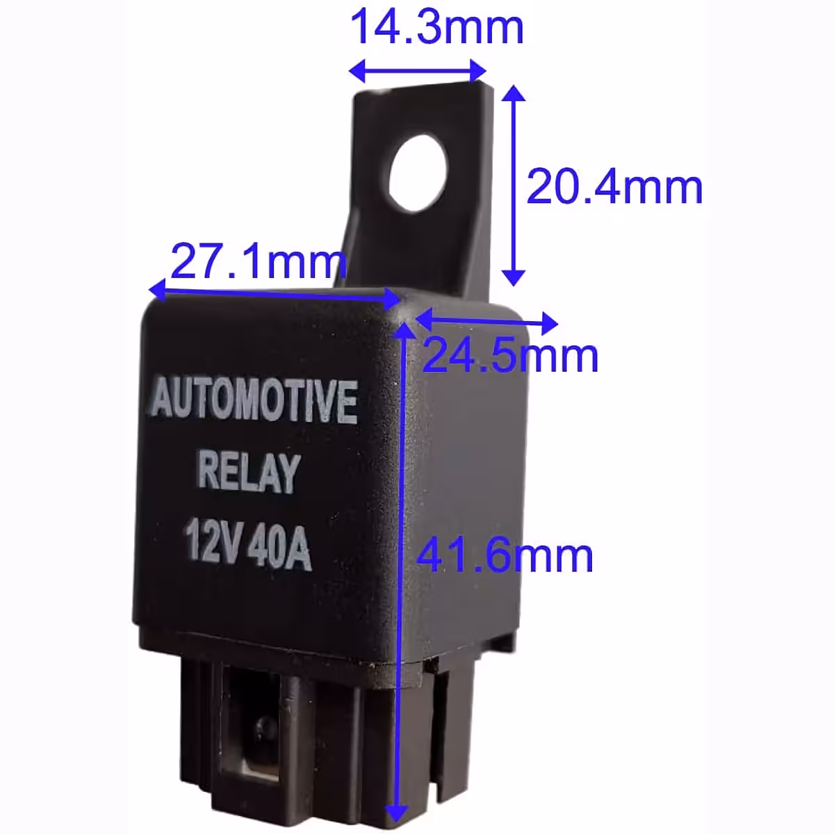 Bilrelæet 12V 4-polet 40A med sokkel er et kompakt og pålideligt relæ, velegnet til styring af bilforbrugere som forlygter, pumper, ventilatorer eller andre elektriske tilbehør. Det giver hurtig reaktionstid, kontakter af Ag Alloy og høj holdbarhed både elektrisk og mekanisk.