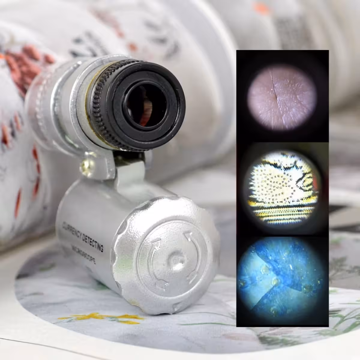 Mikroskopet er lavet af holdbart metal og plast, og UV-lampen gør det muligt at opdage usynlige farver og ultraviolet blæk, hvilket gør det perfekt til kontrol af pengsedler, frimærker, officielle dokumenter, pas og betalingskort.