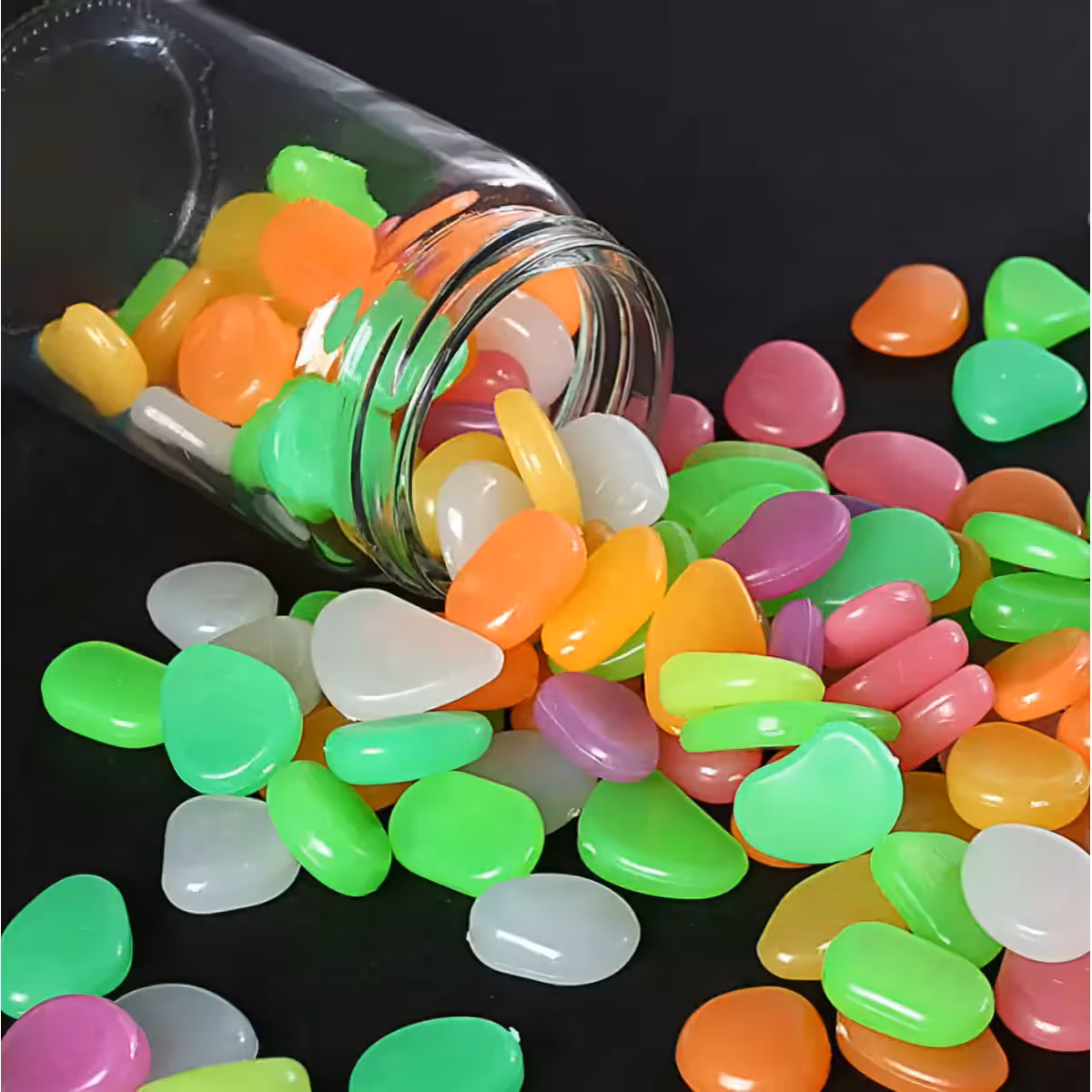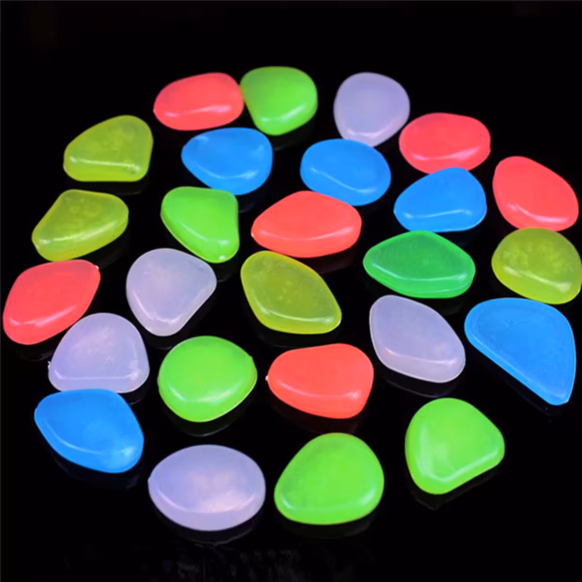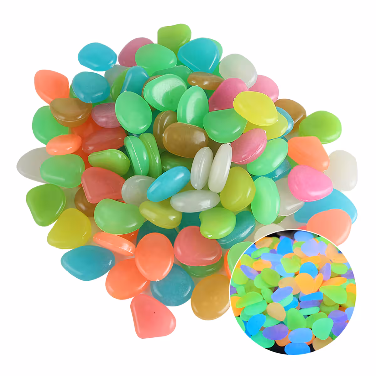 Fosforescerende småsten er ideelle til dekorative arrangementer i haven, gårdhaven, akvarier, blomsterkrukker, vindueskarme, bassiner og swimmingpools. Disse lysende sten kan bruges til at oplyse stier, gangarealer eller endda indendørs for en spektakulær stemningseffekt.