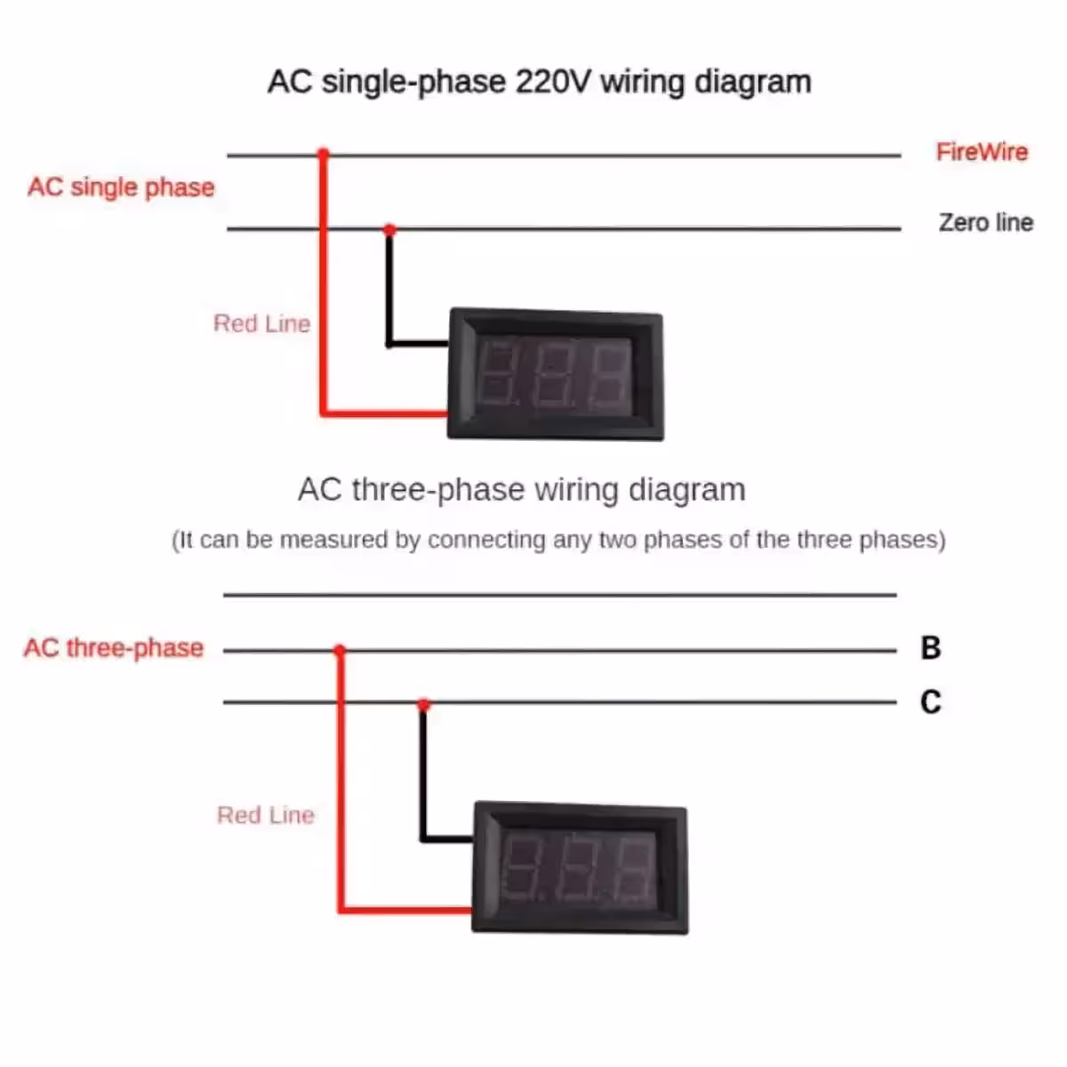 Digital Voltmeter til Vekselstrøm (AC) – Kompatibel med Enkelt- og Trefaset, Blåt LED Display