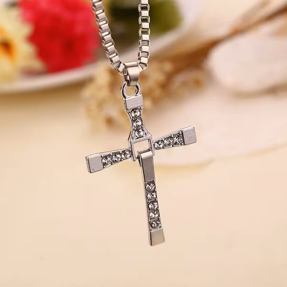 Inspireret af filmen Fast and Furious, dette korsformede vedhæng bæres af Dominic Toretto (Vin Diesel) og symboliserer mod, familie og passion for hastighed, tuning og biler. Perfekt til fans af serien og samlere af film-inspirerede smykker.
