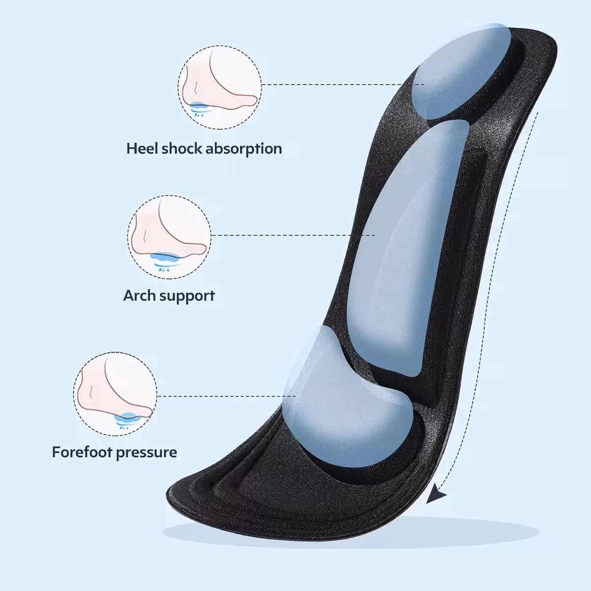 Memory Insoles giver sikkerhed og stabilitet under bevægelse og beskytter led ved at reducere trykket fra kropsvægten.