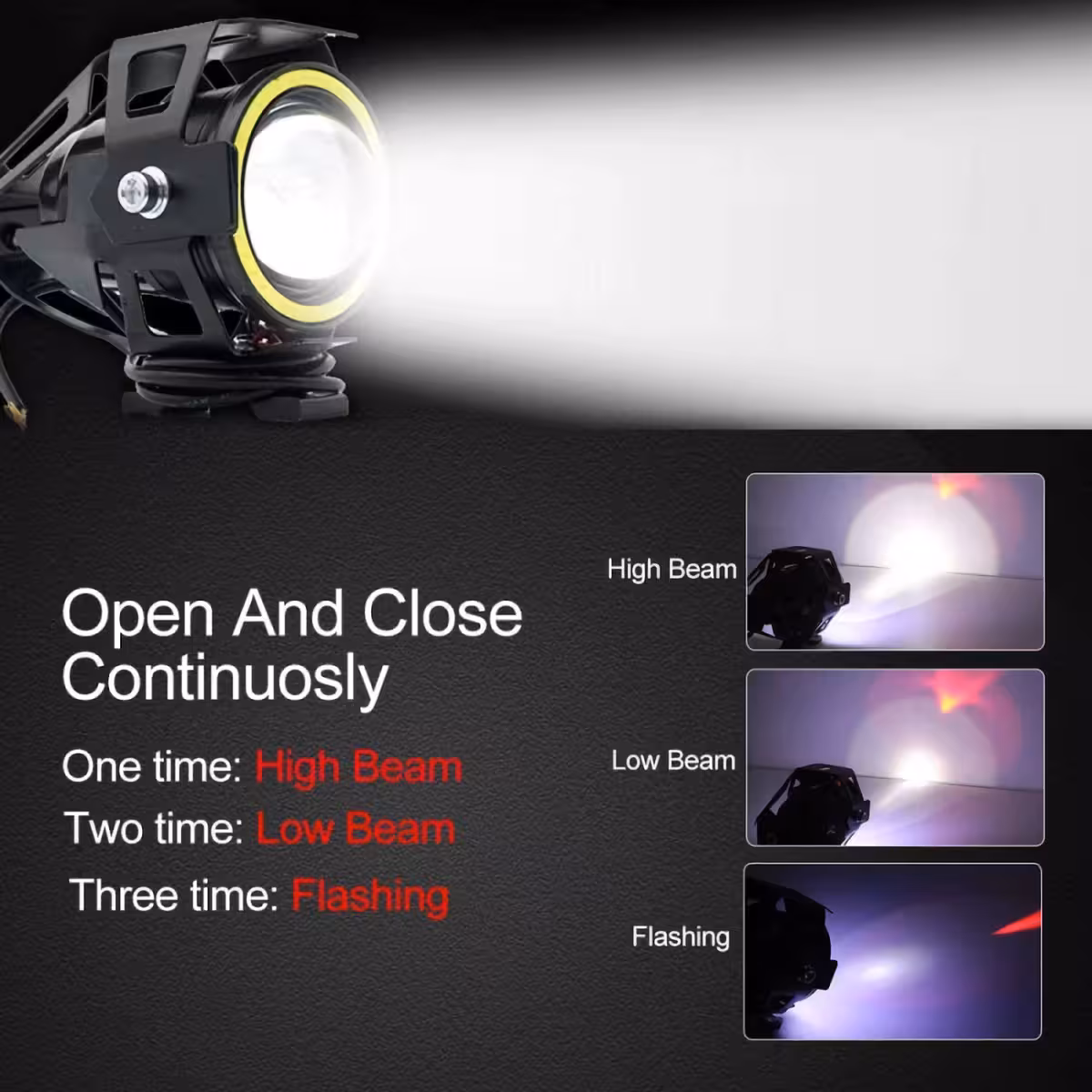 Projektoren er udstyret med højintensitets CREE LED, funktioner for langt lys, nærlys og stroboskop, samt Angel Eyes lysring – perfekt til øget synlighed og et moderne udseende.