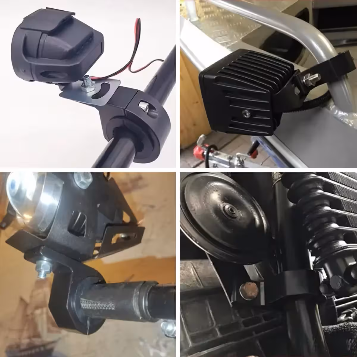 Hvis du har brug for universelle aluminiumsbeslag, der er nemme at montere og kan holde tilbehør som LED-projektører, kameraer, højttalere eller spejle, er dette sæt med 2 holdere det ideelle valg. Kompatibel med scootere, cykler, motorcykler og ATV’er.