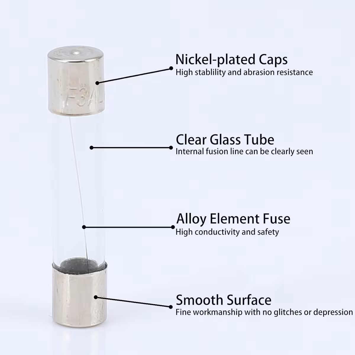 Disse glas sikringer er velegnede til industriel, kommerciel og hjemmebrug. Installer dem i elektriske eller elektroniske apparater for at sikre beskyttelse mod overstrømme og forhindre beskadigelse af udstyret.