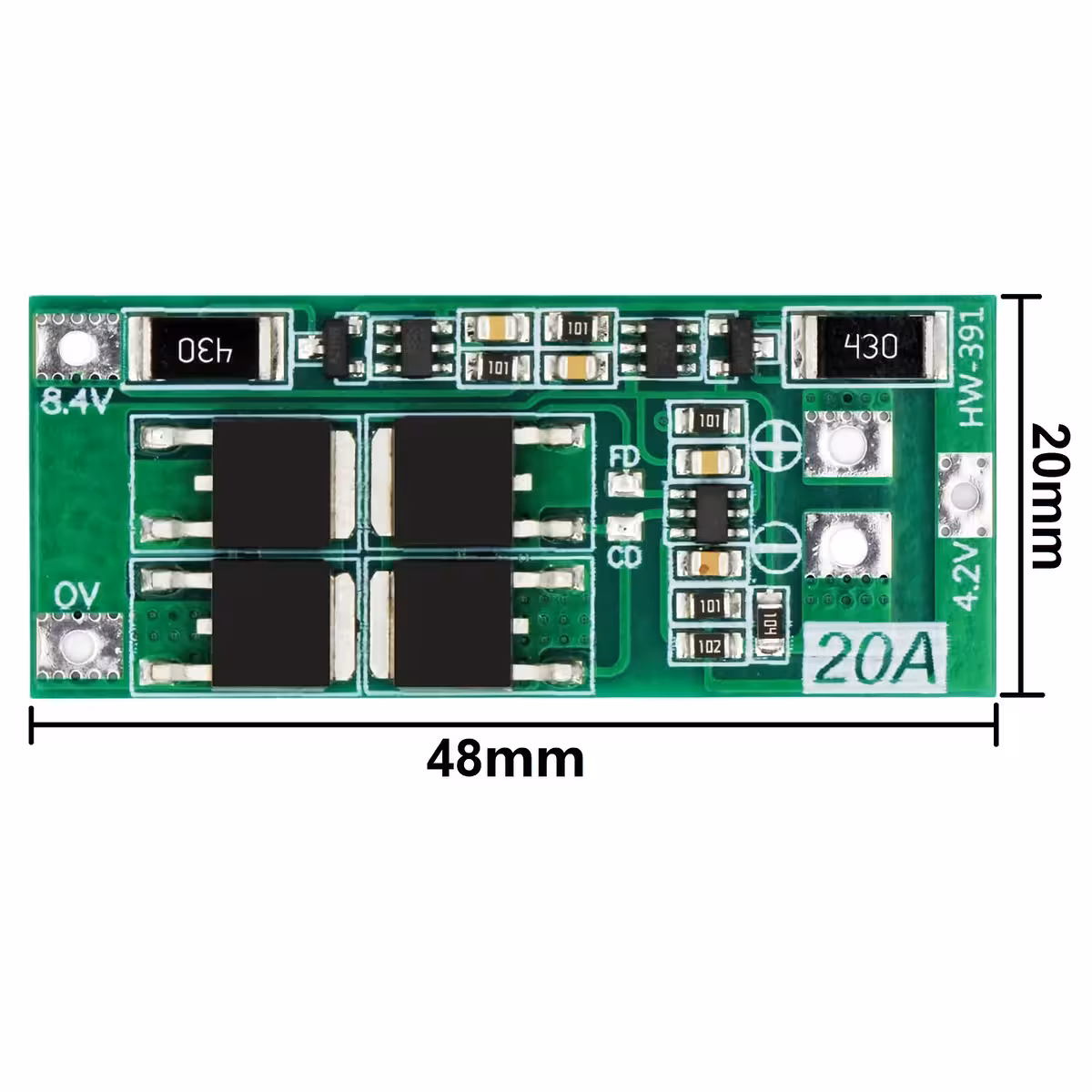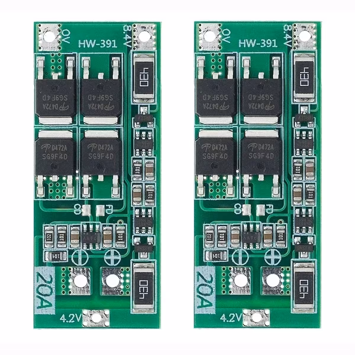 Sæt 2 stk. × BMS 2S 20A — Balanceringsversion (48×20×3,4mm), ideel til 7,4V Li-Ion batteripakker med avanceret beskyttelse og balancering.