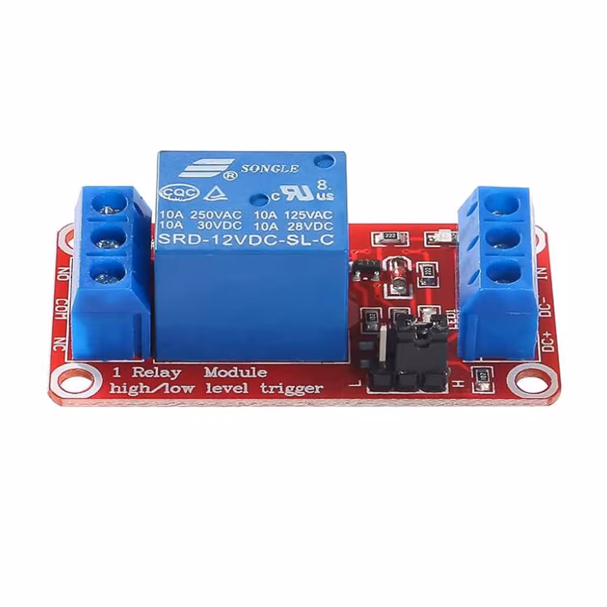 Fås i to varianter: 5V relæmodul eller 12V relæmodul
