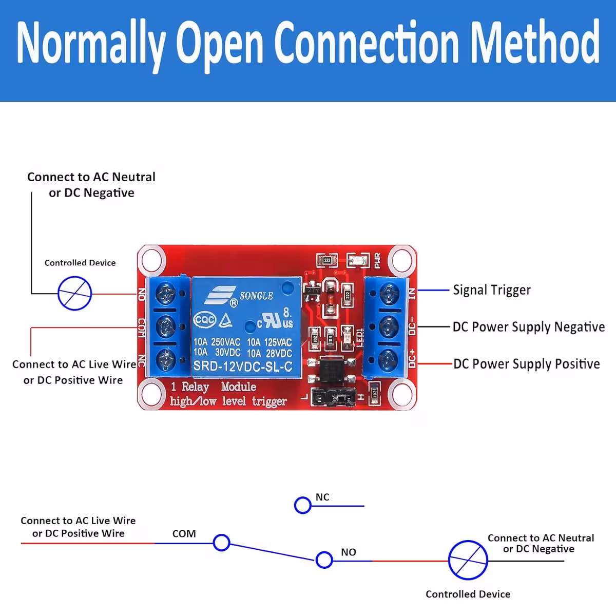 Brug NC/C/NO til at kontrollere AC- eller DC-belastningen.